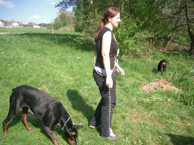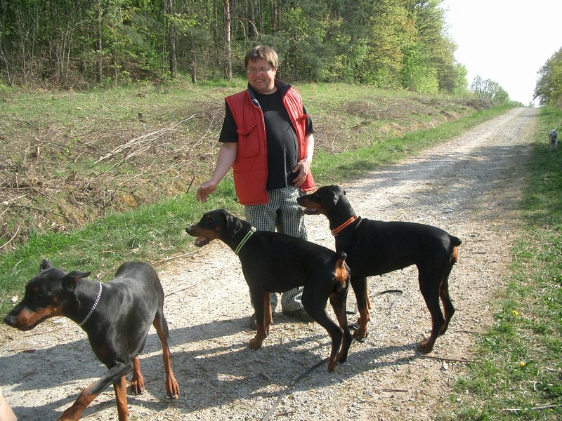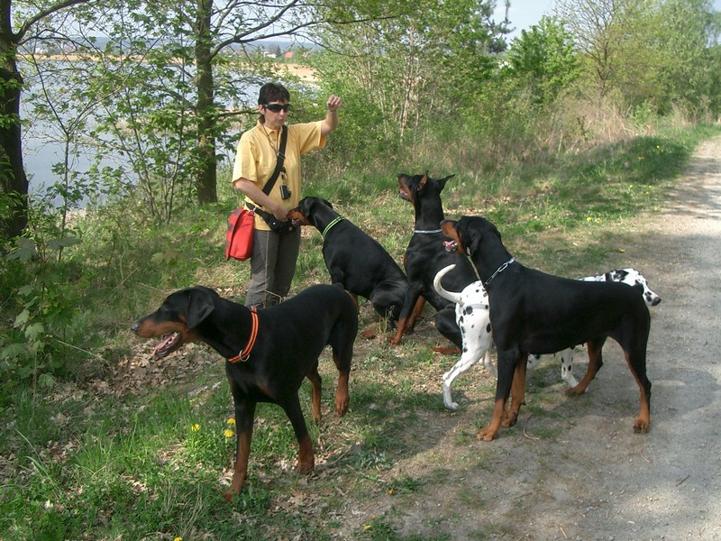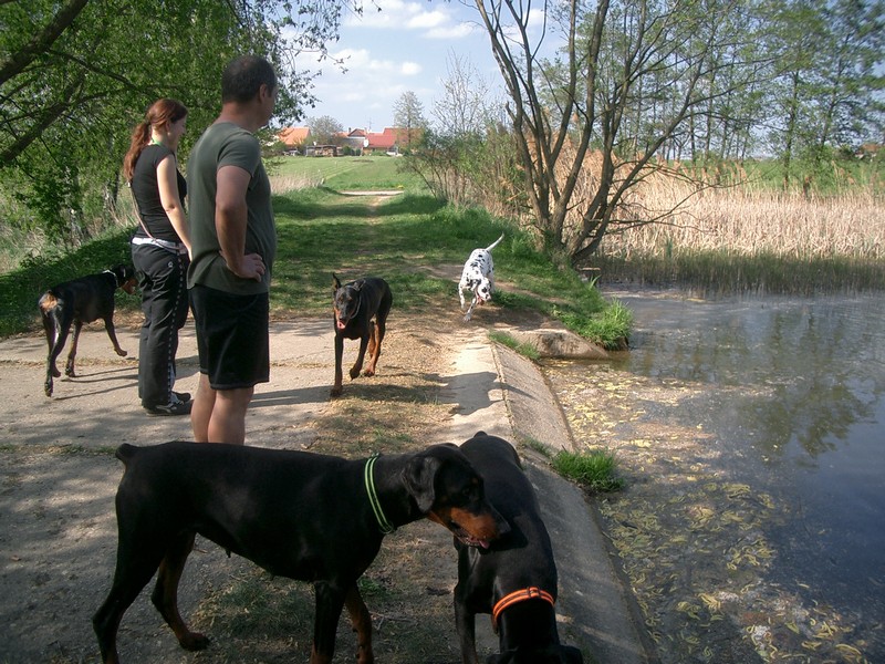 V sobotu dopoledne jela Světlanka na výstavu vystavovat puntíkatou holčičku a odpoledne byla naplánovaná procházka. V poledne se nám rozrostla smečka o dalšího dobrmánka. Slíbila jsem manželům Prášilovým, že jim pohlídám Wandu Pasecké údolí a aby těch dobrmanů nebylo dost, šel s námi venčit i Jarda Jára s Jaspou od Dvou lvů.
