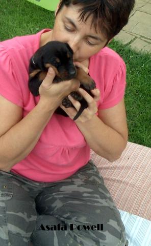 Včera jsme poprvé štěňátka seznamovala s travičkou. Čekala jsem, jak budou řádit, ale čerstvý vzdoušek je natolik unavil, že usnuli manželovi v klíně.