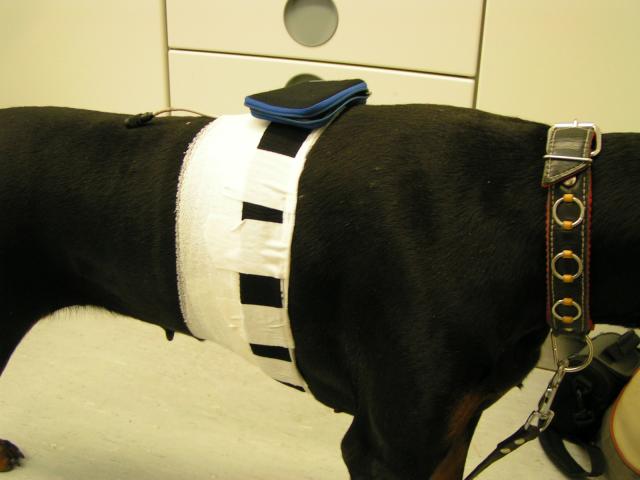 vyholené obdělníčky na těle psa (pro přilepení elektrod)
