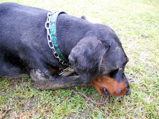 Odpoledne jsem pro nás a pro Kinga domluvila ve Zdicích obrany (70km od Klánovic) s Jirkou Machem. Obrany proběhly v naprosté pohodě, Jirku naše dobrmanky moc dobře znají a King, i když se s novým figurantem v prvním kole seznamoval, v druhém kole kousal jedna radost a já musím říct, že za tu dobu, co jsem ho naposledy viděla, udělali velký krok vpřed. Z obran jsme se vraceli zpět do Staré Boleslavi, kde na nás v baráčku Kingových čekali jezevčíčci a zbytek královské rodiny. Večer proběhl v poklidu u chlebíčků a spousty kafe. Dobrmani pospávali společně s jezevčíkama, jen Hermína chodila často k míse s vodou a zapíjela dopolední mastnou sváču.