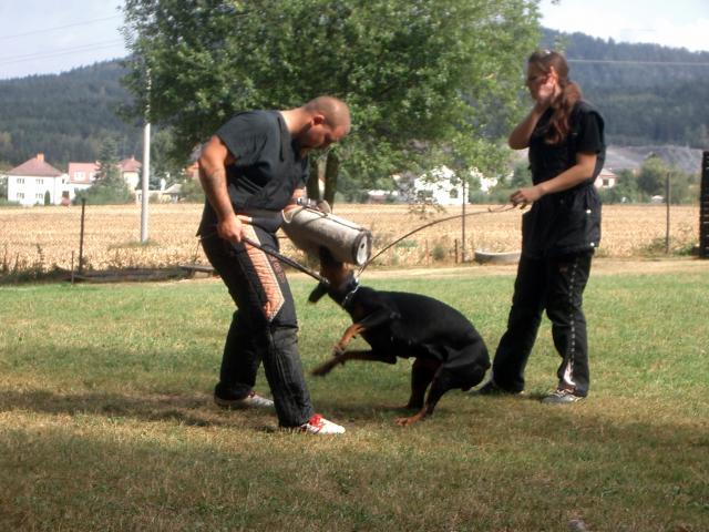 Její figurant Honza Srb se nám moc líbil, Hermína i Jixa na to, že měli za sebou náročnou sobotu, kousali dobře,takže jsme ze cvičáku odjížděli moc spokojení a těšíme se na další takové milé setkání jak se Světlankou, tak i s tímto figurantem.