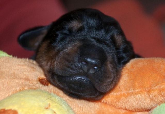 ŠTĚŇÁTKA DOBRMANŮ - VRH C Caro Ebony Queen - 8.dní Váha k dnešnímu dni je 1200g.