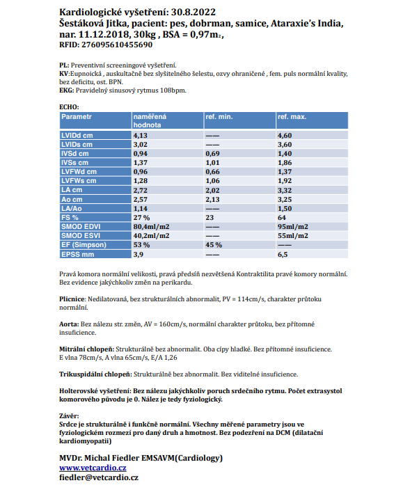 30.8.2022 se India podrobila kontrolnímu vyšetření srdce (EKG, ECHO, 24hod. HOLTER ). Všechny výsledky jsou negativní. Zároveň proběhla kontrola krve. Krevní testy jsou také v normálu.
