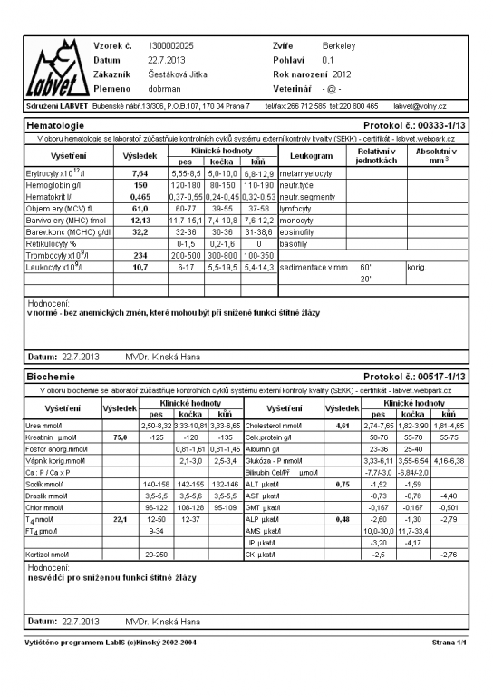 VÝSLEDKY Z RENTGENŮ KYČLÍ