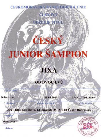 Jixa Od dvou lvů ve třídě mladých V1 CAJC Klubový vítěz