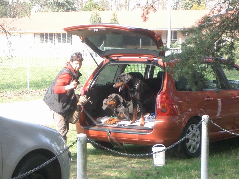 Po obranách jsme klábosili o všem možném, ale hlavně o problémech kynologických a po očku kontrolovali dobrmaní smečku od Dvou lvů. A že se jich tu sešlo : Jaspa Jixa,Issa,Cally,Haggi,Agnes s Anelly a malá Ája. Sedělo se pěkně, ale protože měla být z důvodu návštěvy amerického prezidenta uzavřena od 17,00 hod. Jižní spojka, vyrazili jsme k domovu raději dříve než jsme plánovali.