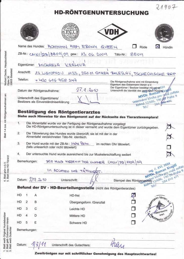 | Andra vom Beuchower Hof BH, ZTPSG1A | Ferro von Donarius ZTPV1A, SchH1, AD | |