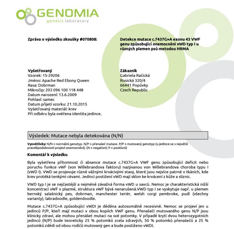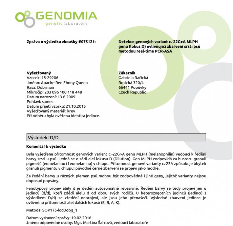 2016 Echokardiografie + Holter (24 hodinové EKG) negativní MVDr. Schreer Brno