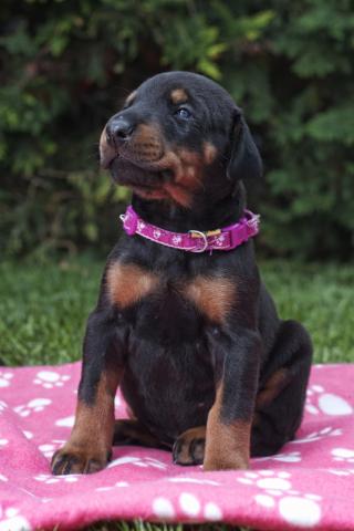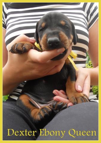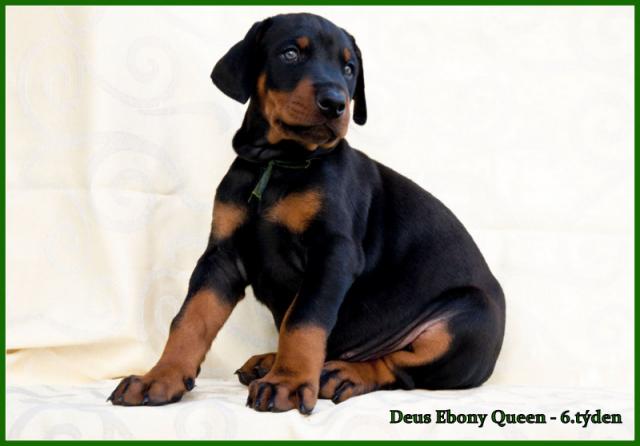 APACHE RED EBONY QUEEN je klidný, vyrovnaný a sebevědomý pes s velkou chutí pracovat. Je vášnivý aportér a výborný obranář, ale na druhé straně je výborně socializovaný. Jeho otcem je finský pes Cliff vom Beuchower Hof- účastník Mistrovství světa IDC dobrmanů v roce 2009.