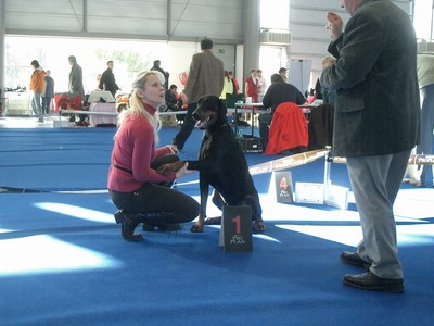 Posudek : 18 měsíční fena středně velká, výborná konstituce i hlava, výborný formát, správné končetiny, správný, ale nedostatečně pevný pohyb.
